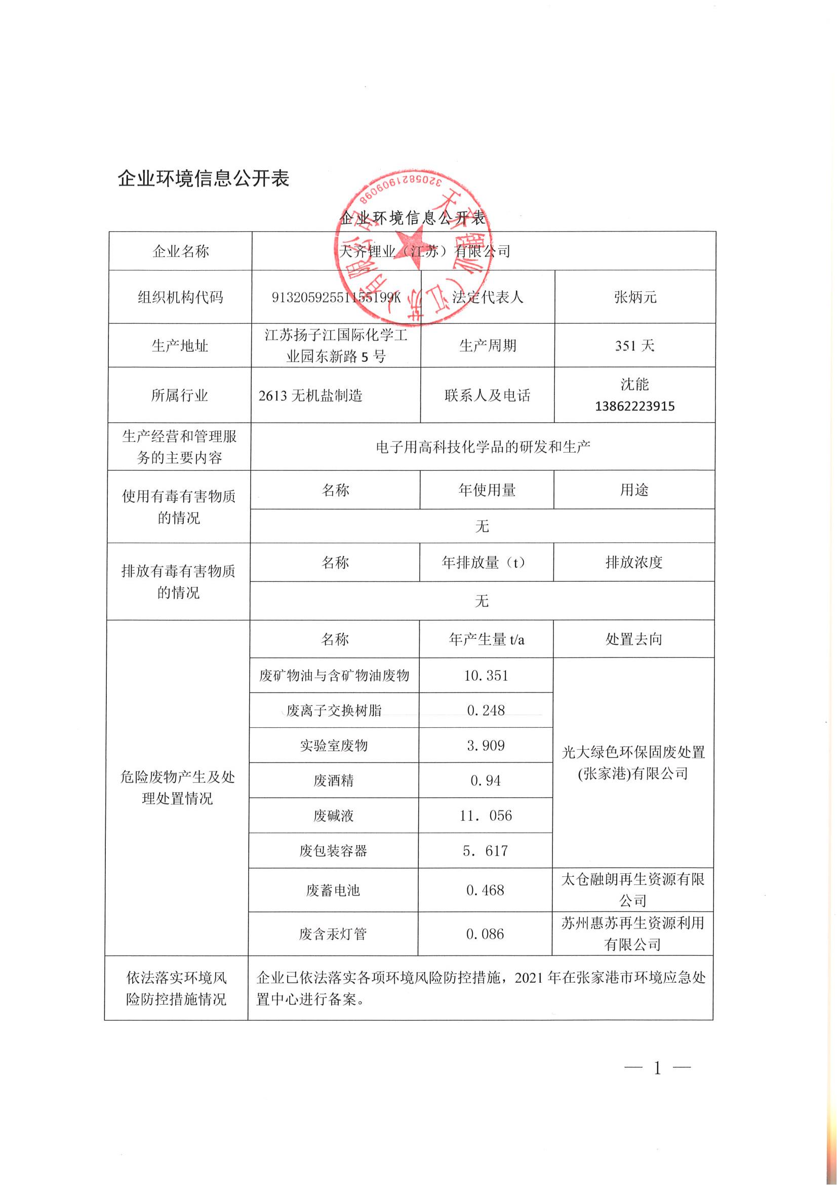 泰柯棕化(张家港)有限公司36.5万吨表面活性剂产品结构调整技术改造项目(第一阶段)竣工环境保护验收报告的公示